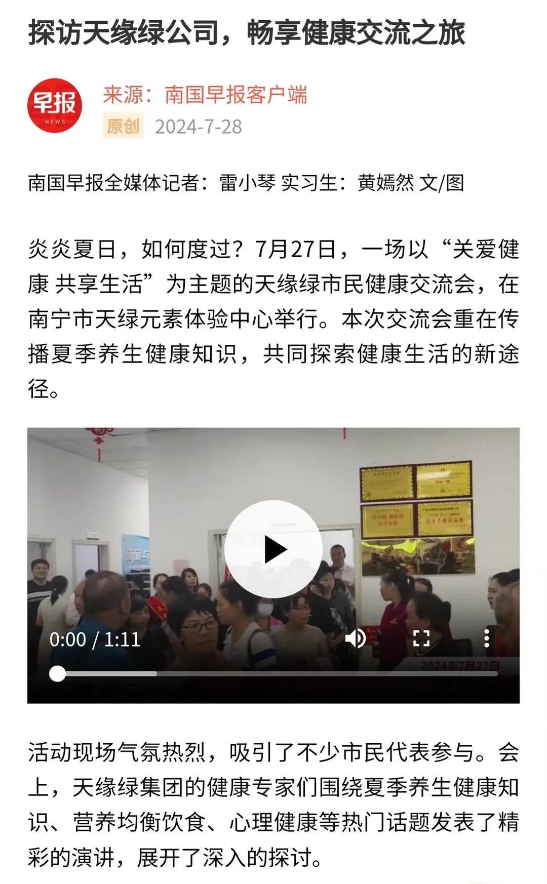 引爆媒體熱潮!天緣綠健康交流會獲南國早報(bào)等三十多個媒體報(bào)道
