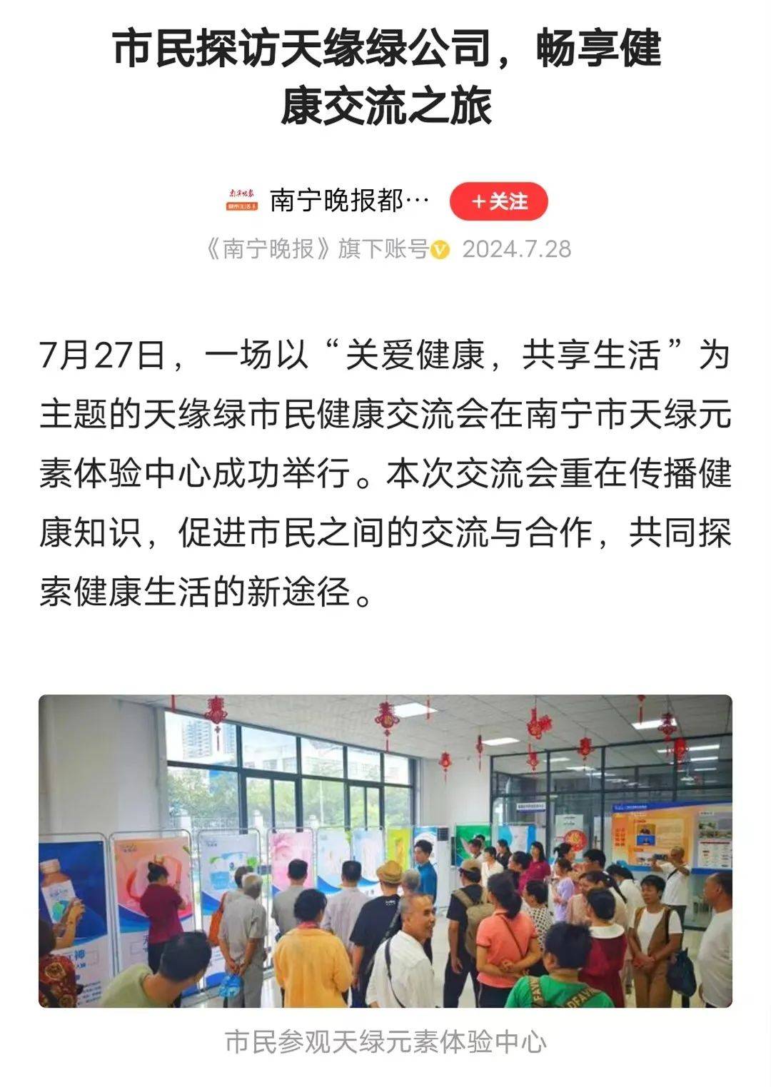 健康交流會活動報(bào)道迅速在各大媒體平臺上傳播開來。許多市民表示,通過媒體的報(bào)道,他們不僅學(xué)到了很多實(shí)用的健康知識,還感受到了天緣綠集團(tuán)對公眾健康的深切關(guān)懷和社會責(zé)任感,認(rèn)為這樣的活動對于提升公眾健康素養(yǎng)、推動健康生活方式非常具有意義。