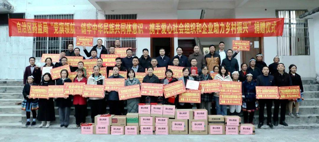 天緣綠集團(tuán)與廣西醫(yī)藥商會(huì)、廣西藥師協(xié)會(huì)、廣西醫(yī)療器械行業(yè)協(xié)會(huì)、廣西化妝品協(xié)會(huì)等眾多單位跟隨廣西壯族自治區(qū)藥監(jiān)局領(lǐng)導(dǎo)攜手共赴南丹縣,開展了以“黨旗領(lǐng)航·鑄牢中華民族共同體意識(shí)·攜手愛心社會(huì)組織和企業(yè)助力鄉(xiāng)村振興”為主題的幫扶捐贈(zèng)活動(dòng)。