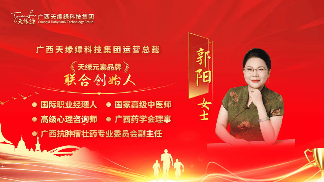 郭陽女士,作為天綠元素品牌聯(lián)合創(chuàng)始人,不僅肩負著引領(lǐng)品牌發(fā)展的重任,同時在大健康領(lǐng)域深耕細作,擔任著廣西藥學會理事、廣西膏方專業(yè)委員會委員以及廣西抗腫瘤壯藥專業(yè)委員會副主任等多個重要職務(wù)。此外,她還擁有國際職業(yè)經(jīng)理人、高級心理咨詢師與國家高級中醫(yī)師的權(quán)威資質(zhì)。郭陽女士的每一步都堅實而輝煌,不僅要推動天綠元素惠及更多人,更要引領(lǐng)團隊實現(xiàn)“健康他人,成就自己”的企業(yè)愿景,讓每個人都能在天緣綠實現(xiàn)自我價值,共同書寫健康事業(yè)的新篇章。