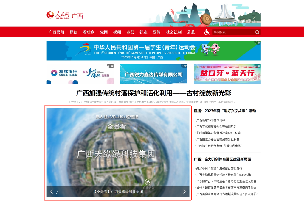 廣西天緣綠科技集團(tuán)全景VR在“人民網(wǎng)”重磅上線,邀你“掌上參觀”天緣綠