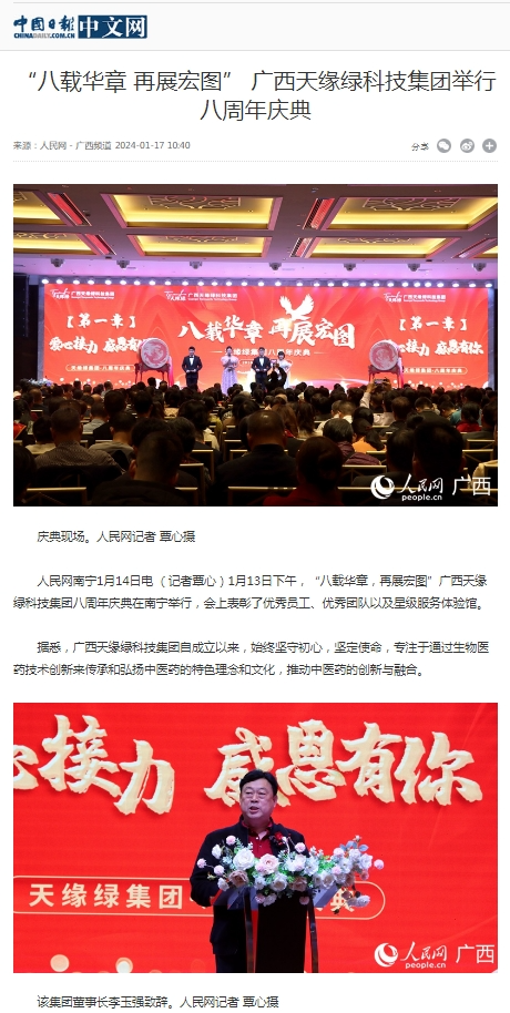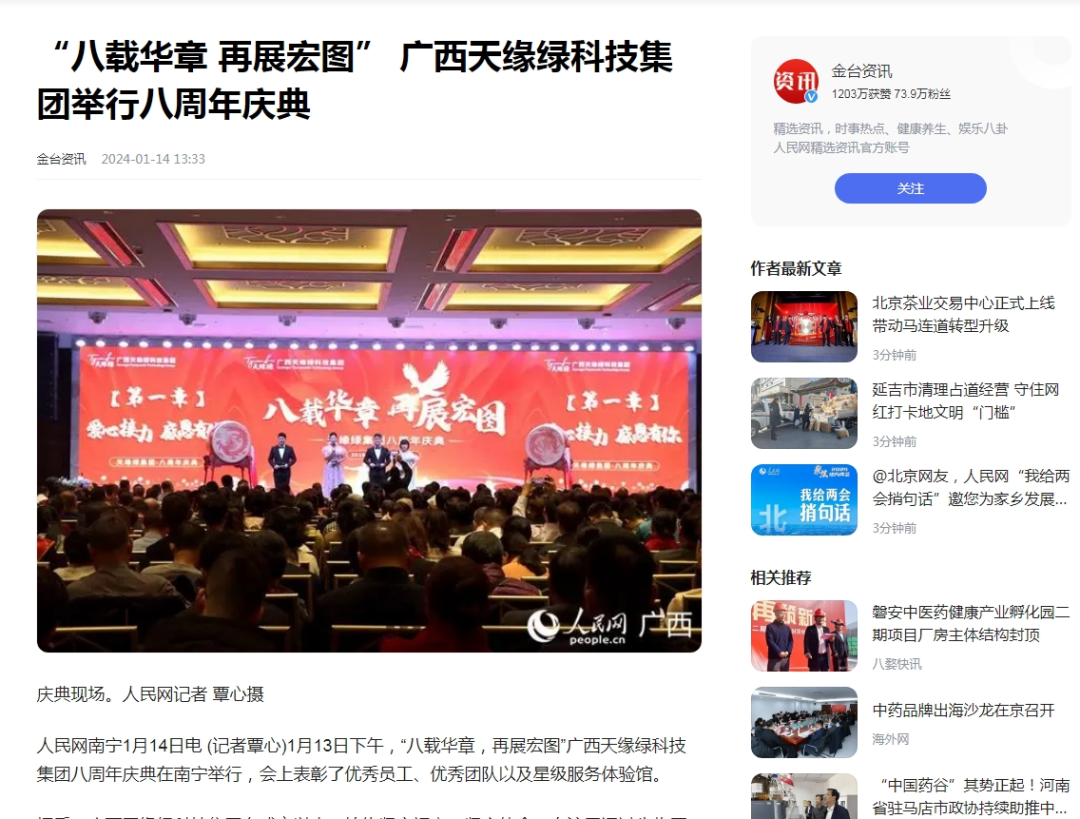 人民網(wǎng)、中國日報網(wǎng)等各大新聞媒體爭相報道,天緣綠集團八周年慶典引社會各界廣泛關注