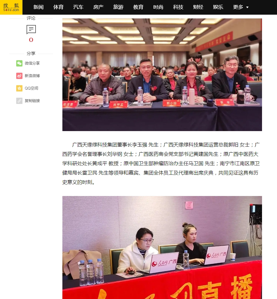 隨后,中國日報網(wǎng)、搜狐網(wǎng)、網(wǎng)易新聞、華聲晨報、八桂網(wǎng)、中國經(jīng)濟新聞網(wǎng)等眾多主流媒體紛紛轉(zhuǎn)載報道天緣綠集團的八周年慶典。各大媒體的轉(zhuǎn)載和發(fā)布不僅讓更多人了解了天緣綠集團,還引發(fā)了全社會對中醫(yī)藥發(fā)展、藥食同源文化、傳統(tǒng)中醫(yī)藥與現(xiàn)代生物科技融合等方面的關注和思考。