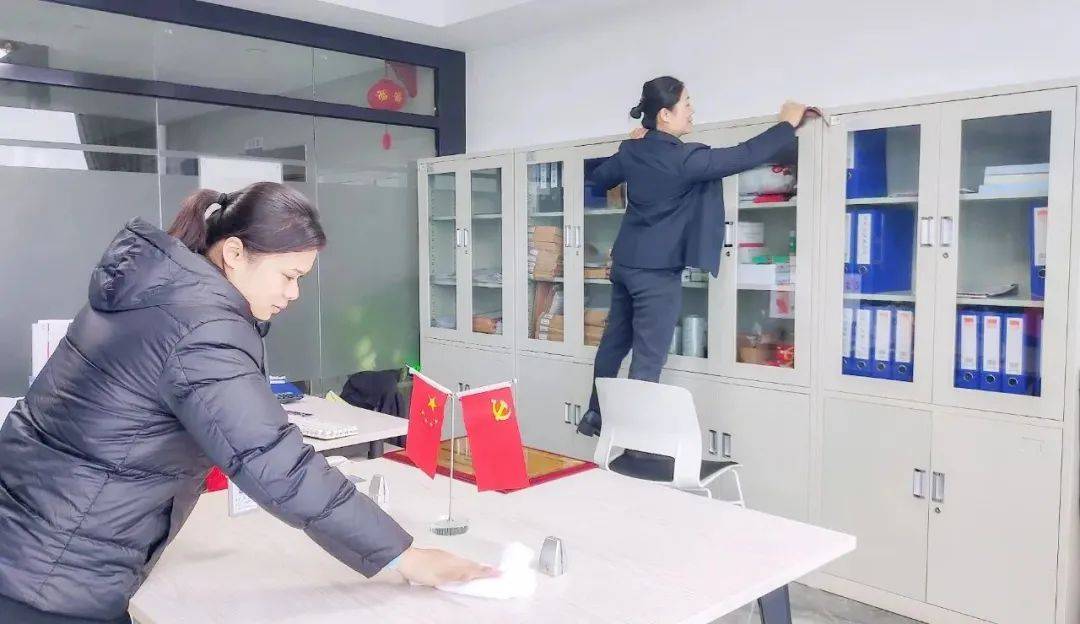 在除“陳”行動中,大家各司其職,有的負責擦拭染塵的柜子,讓它們煥然一新;有的專心致志地清潔桌面上積落的灰塵,確保每一個細節(jié)都完美呈現(xiàn);有的整理不再需要的文件資料,將它們歸類歸檔,使辦公環(huán)境更加整潔有序;還有的耐心地擦拭窗戶,確保每一道陽光都能毫無阻擋地灑進辦公室,為工作場所帶來明亮和溫暖。通過大家的共同努力,天緣綠集團煥然一新。