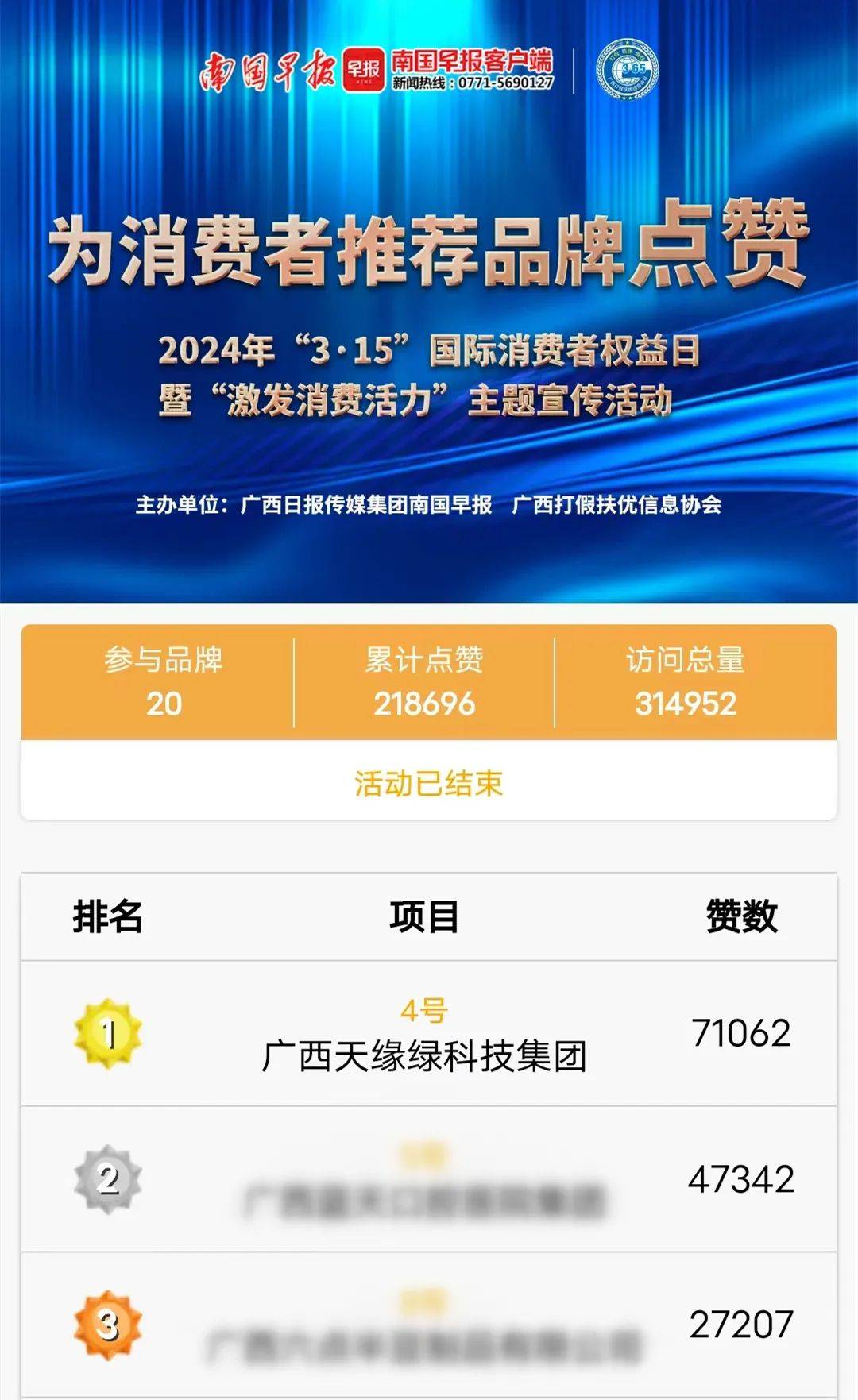 喜報!廣西天緣綠科技集團(tuán)榮登“消費(fèi)者推薦品牌”榜首
