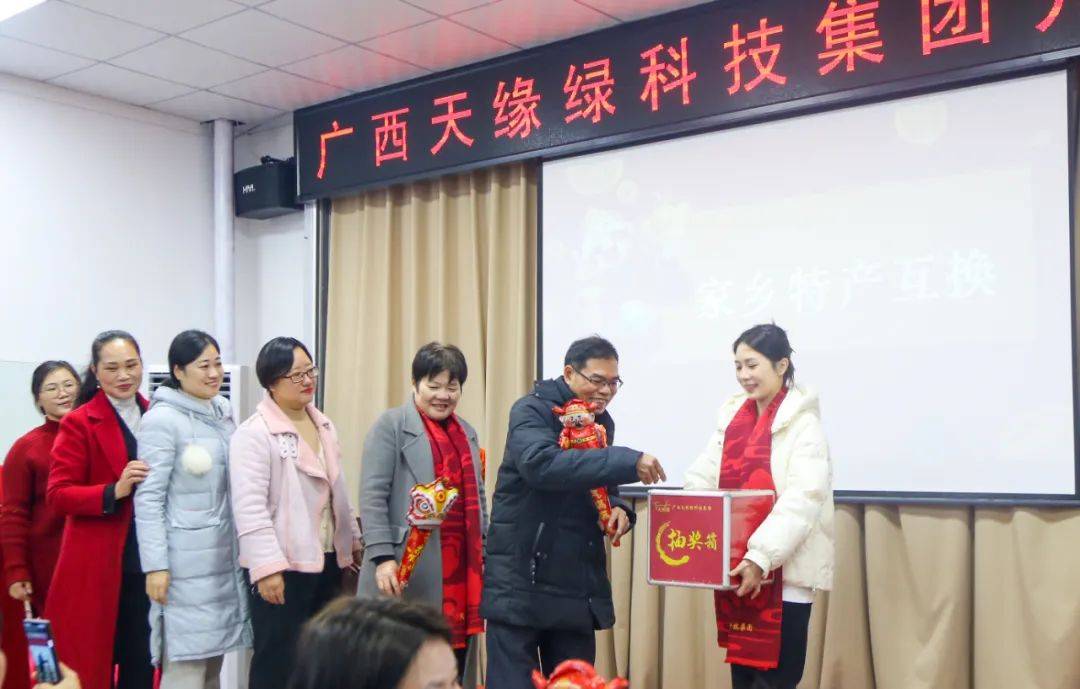 活動的重頭戲——以抽獎的方式進(jìn)行家鄉(xiāng)特產(chǎn)的互換,將現(xiàn)場氣氛推向了高潮。員工與經(jīng)銷商們紛紛上臺,抽取數(shù)字,領(lǐng)取承載著不同地域家鄉(xiāng)的記憶與情感的家鄉(xiāng)特產(chǎn)。