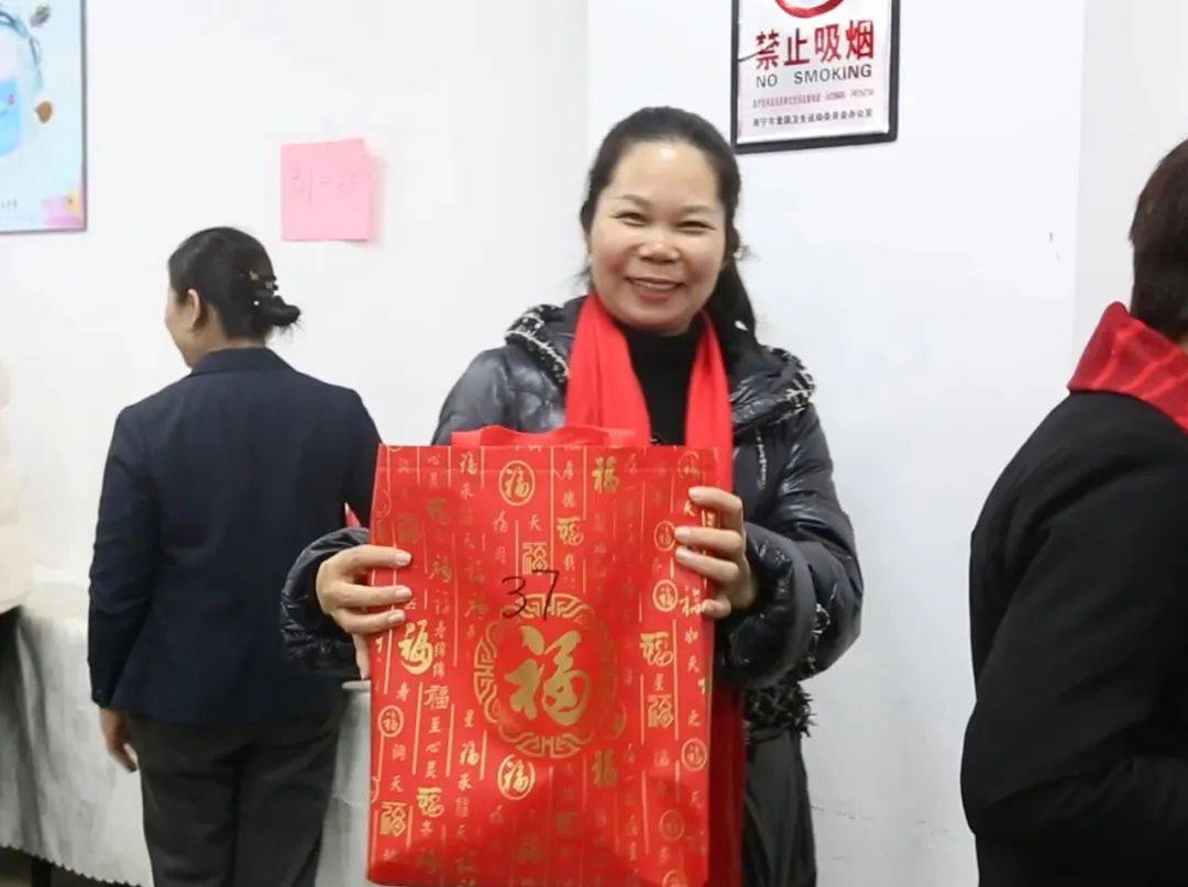 “抽到72號(hào)的同事,請(qǐng)到左手長(zhǎng)桌領(lǐng)這份‘盲盒’!”隨著主持人一聲吆喝,南寧姑娘抽中了橫縣同事準(zhǔn)備的包裹。揭開(kāi)保鮮袋,是一個(gè)鐵托盤(pán)盛放的年糕和一袋手工腌制的醬蘿卜,袋里附著的紙條上歪歪扭扭寫(xiě)著:“年糕是早起時(shí)剛蒸好的,醬蘿卜也是自個(gè)做的,祝年年高升?!”