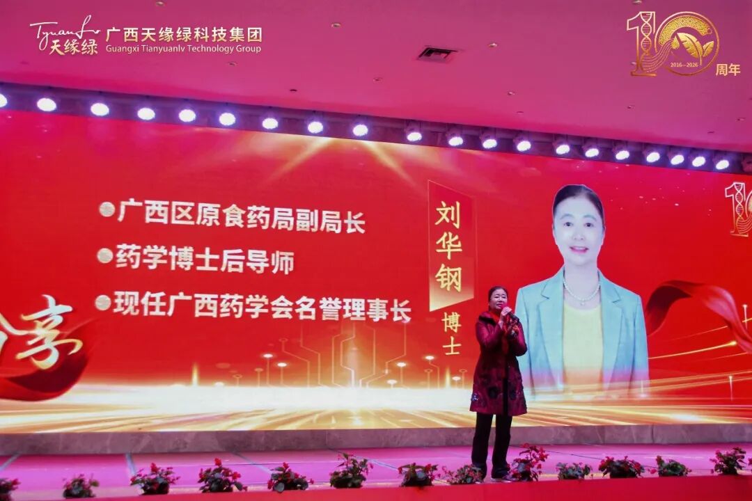 2026年1月13日,天緣綠集團十周年慶典現(xiàn)場,燈光聚焦,萬眾矚目。當集團名譽董事長李玉強、運營總裁郭陽攜手廣西醫(yī)科大學藥學院陽潔院長、首席科研專家劉華鋼博士等八位代表,共同將手掌置于啟動球上,隨著全場倒計時歸零——“5、4、3、2、1,啟動!”璀璨光芒瞬間綻放,禮炮齊鳴。